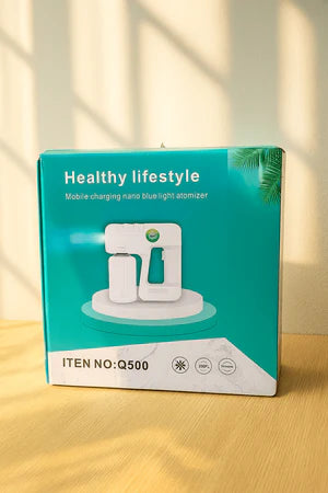 Nano Blue Light Atomizer – A portable disinfectant sprayer with 500ml capacity and blue light sterilization for home, office, and outdoor hygiene.
